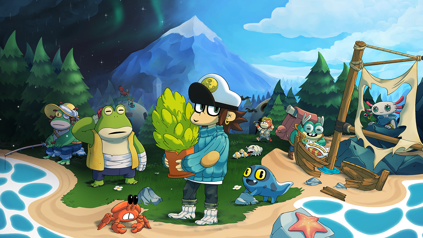 "Cast away on an island paradise complete with a cast of friendly frogs. Enjoy sandbox island life and explore at your own pace, solving sticky situations for your new friends."