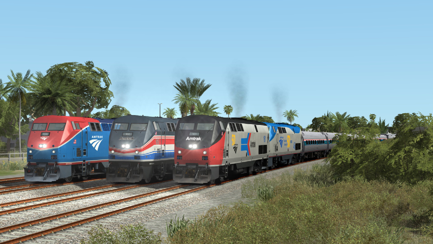 Four career scenarios featuring the Amtrak 50th Anniversary diesels on the Train Simulator Miami-West Palm Beach route (route available separately) are included: