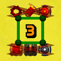 • Large Laser : Affects objects in the same row and column within 1 unit of the selected core.