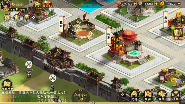 君主扮演模式,只需关注城内各类功能、资源产出建筑即可,放置管理,减少了繁琐的界面操作。