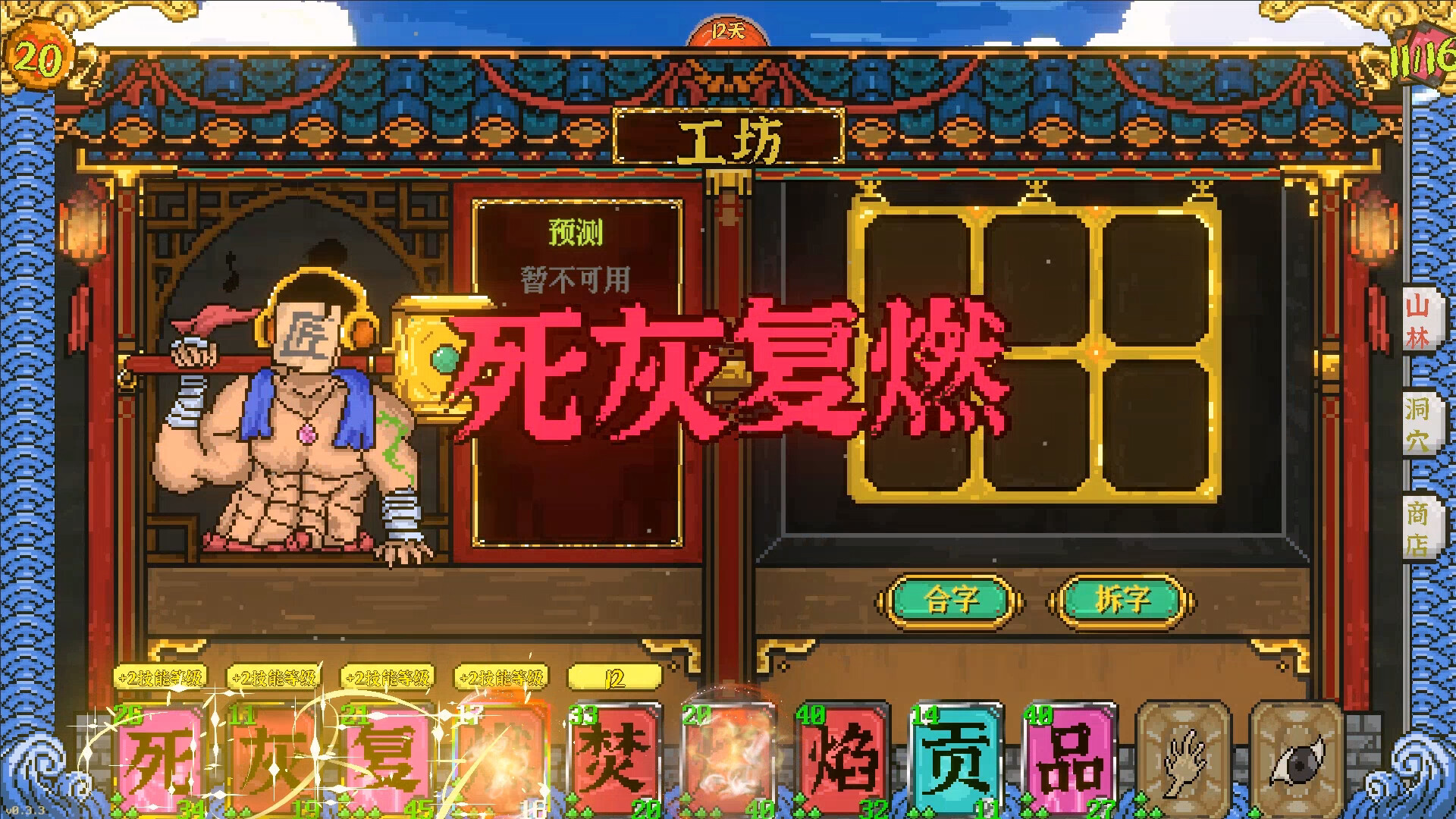 A Roguelike card game based on Chinese character rules! Cards are designed according to the meaning of the characters. You can composite stronger character cards, and composite words to enhance their skills. Emergence of unconstrained builds, experience endless fun!