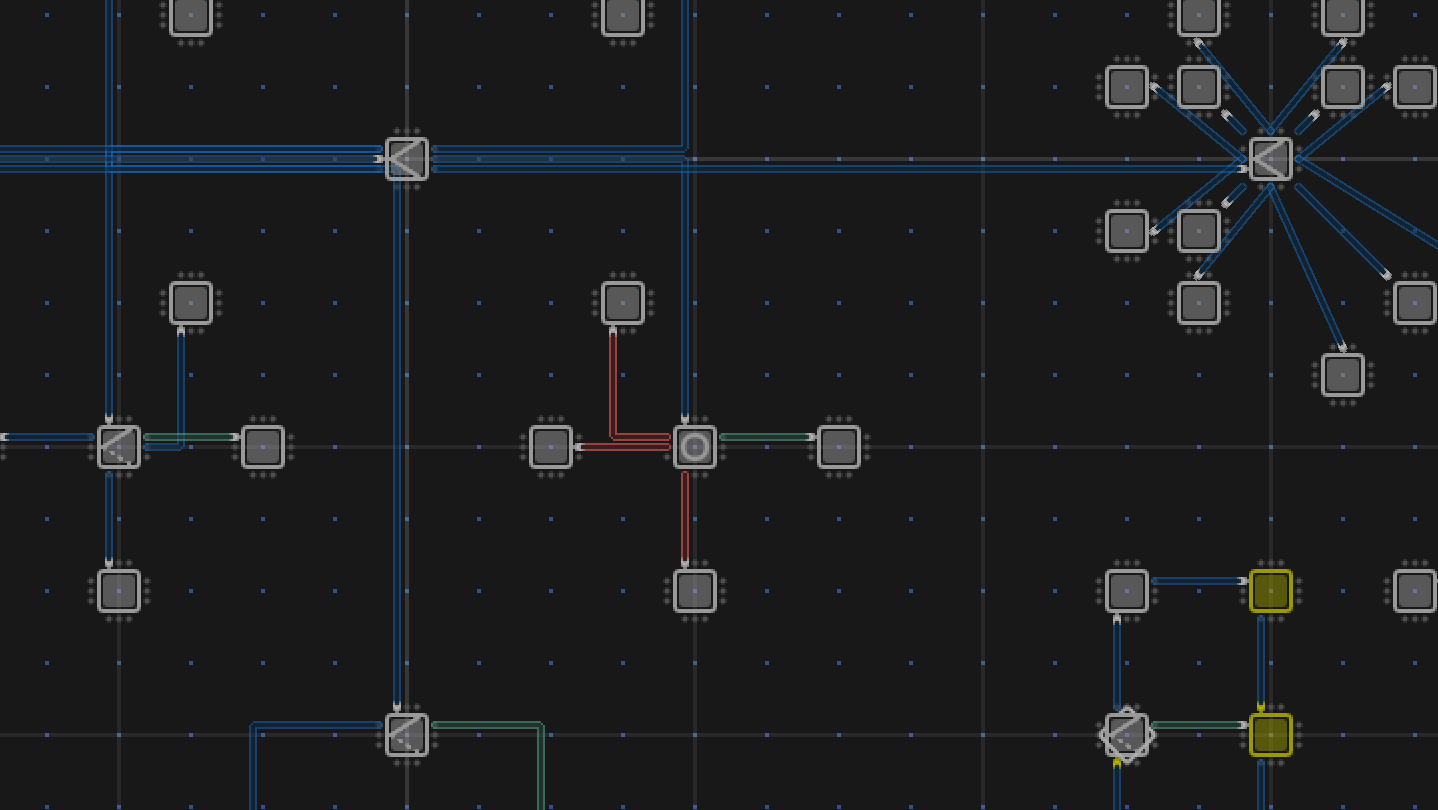 Midinous works on a grid system where the distance between each tile is a quarter note. Arrange objects called ‘Points’ and connect them together with ‘Paths’ to quickly create complex looping or branching sequences of MIDI data. Branch to points randomly or instantly, split signals, or have signals travel in order of Path creation. Turn snapping mode off for complex rhythms and odd timing!