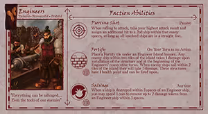 On the left side of each faction card is an illustration, some adjectives to describe the faction and a quote the faction can be heard saying from time to time.