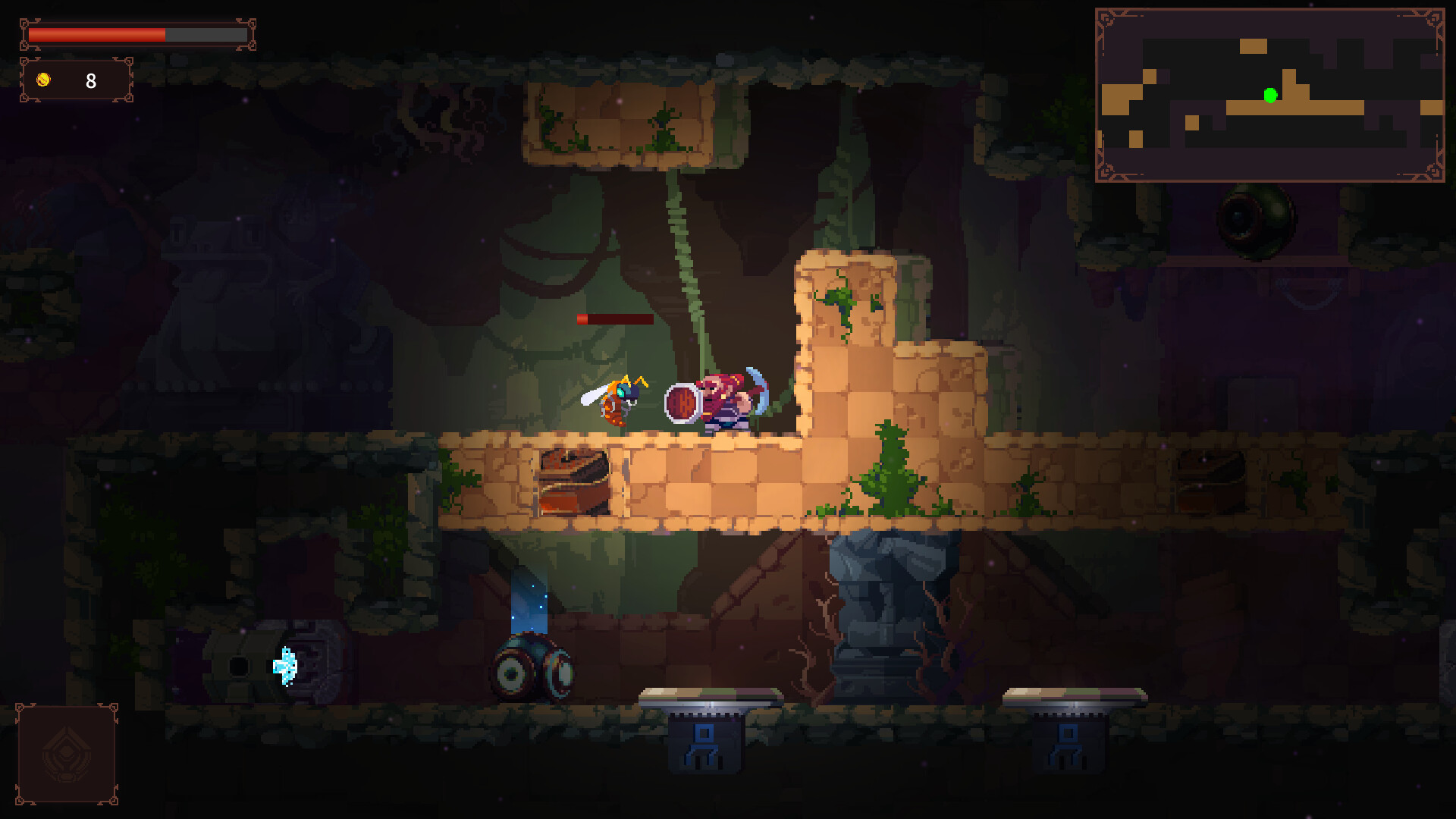 Always be on guard though. The caves bristle with a variety of creatures, from overgrown frogs and hornets to giant winged laser-shooting eyeballs. Various traps and turrets lurk in the corridors, waiting to undo your adventurers.