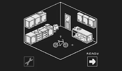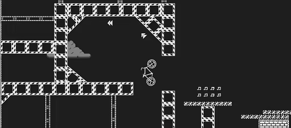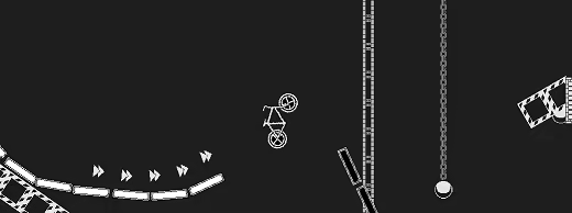 Mostly black and white minimalist graphics. You are a self-controlled bicycle that needs to climb difficult obstacles using your skills. Find your way to freedom.