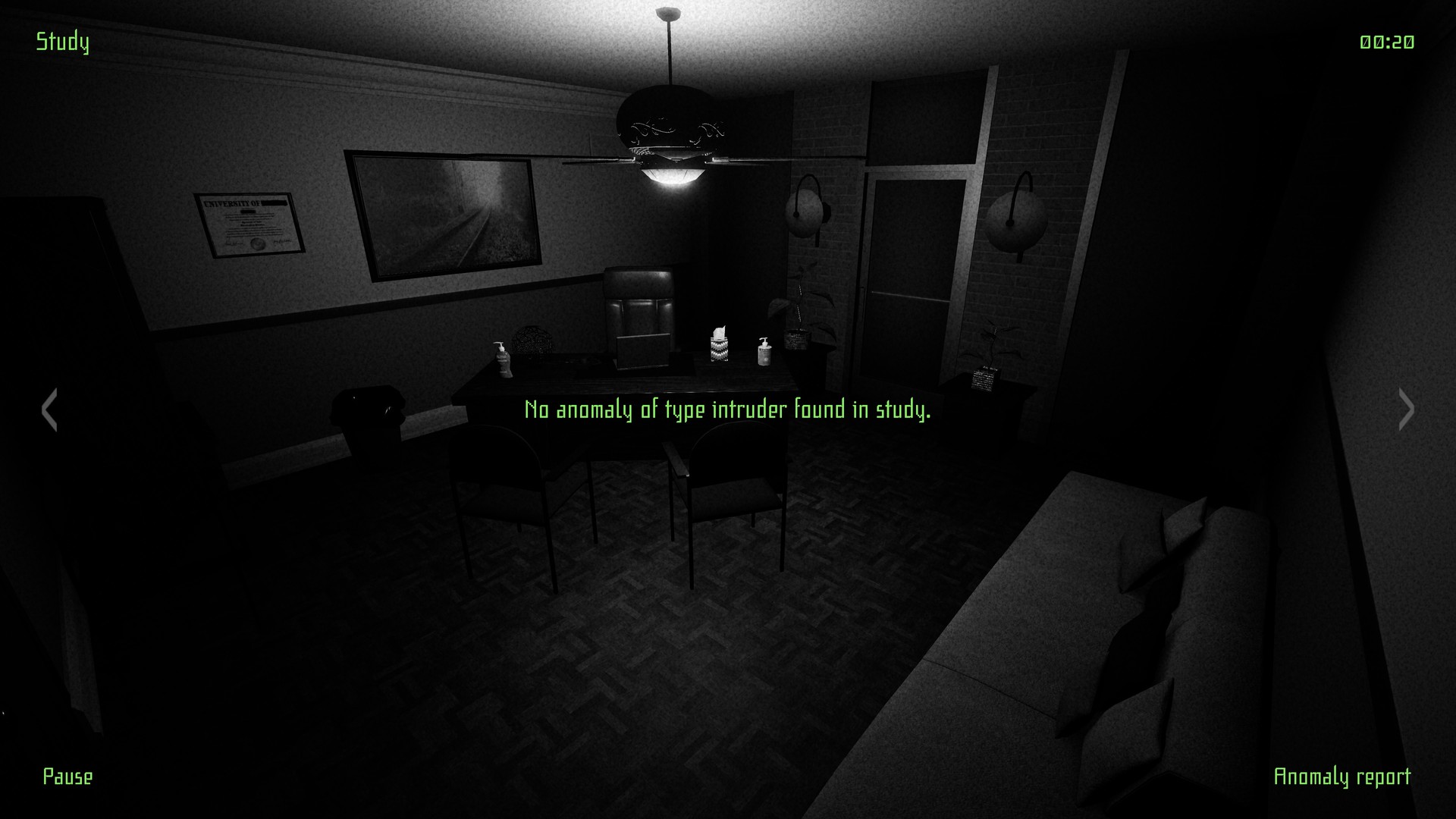 A spot the difference -type of puzzle horror game about monitoring live surveillance camera footage and spotting anomalies. Anomalies range from furniture movement to intruders. Fix anomalies by filing reports. You will need sharp eyes and good memory. The goal is to survive the entire night.