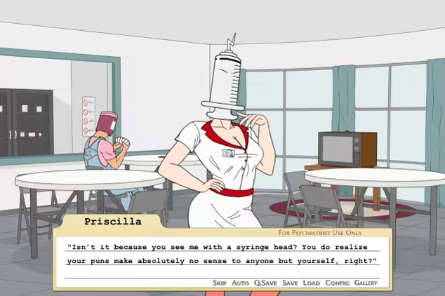 In addition, this game has vulgar language and references to sexual actions. The protagonist can become intimate with multiple characters, including nurses, security, patients, and his psychiatrist. All characters are 21 & over.