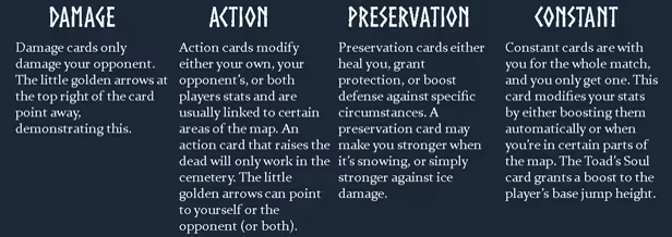 Before casting a Fireball try the Borrow Flame Action Card. It'll gain 1.5X damage for every flame in the room that you borrow. Cast a Moon-bound Action Card followed by Stone Shoes, leave your opponent floating in the air.