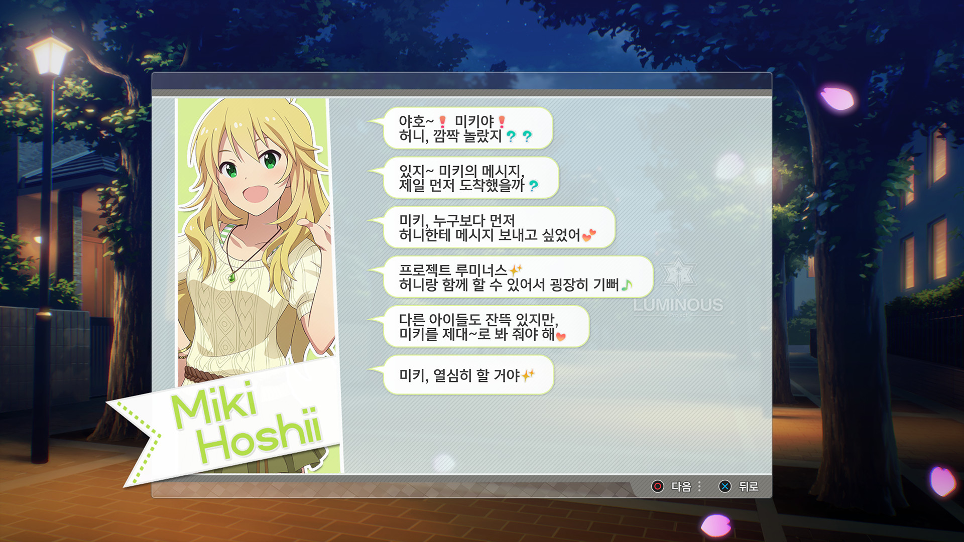 아이돌마스터 스탈릿 시즌 - 미키의 메시지에 대한 사용자 평가 사용자 평가 정보 환경 설정