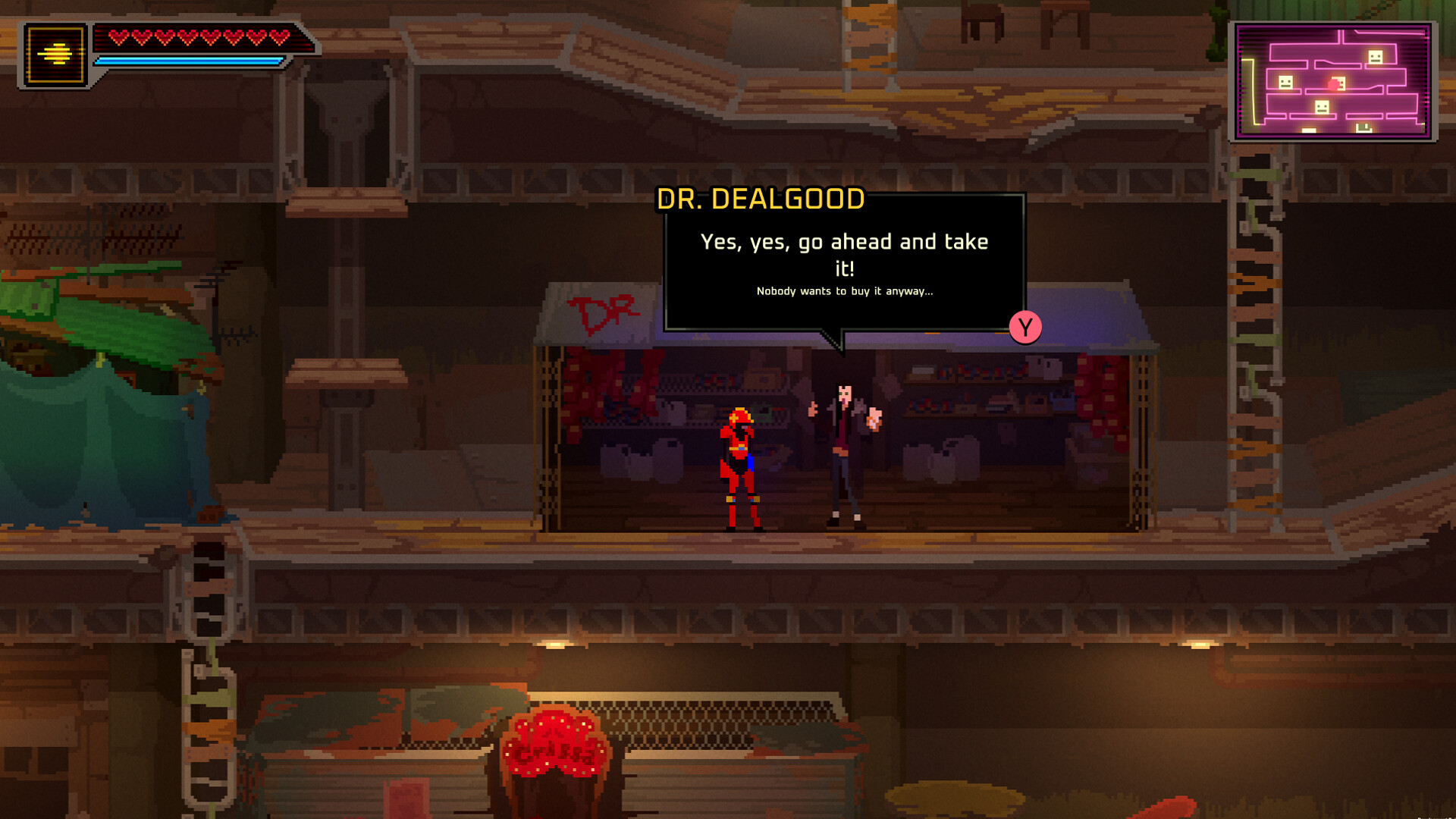 A nostalgic metroidvania adventure with insane weapons, skills, and pixel gore. Ride your BMX and blast your enemies as you discover the secrets of the Wasteland.