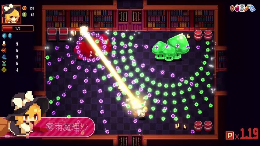 “「東方Project」シリーズ二次創作作品で、弾幕シューティング系ローグライクアクションゲーム。ランダムダンジョンに変貌した「紅魔館」を舞台に、素敵なご褒美のゲットを目指して幻想郷の住人たちが暴れ回る。弾幕とローグライクが組み合わさったスリリングなバトル、「リワード」による戦闘スタイルの構築要素が特徴。固有スキルによる個性付けが図られた、20人ものプレイアブルキャラクターたちも圧巻だ。”