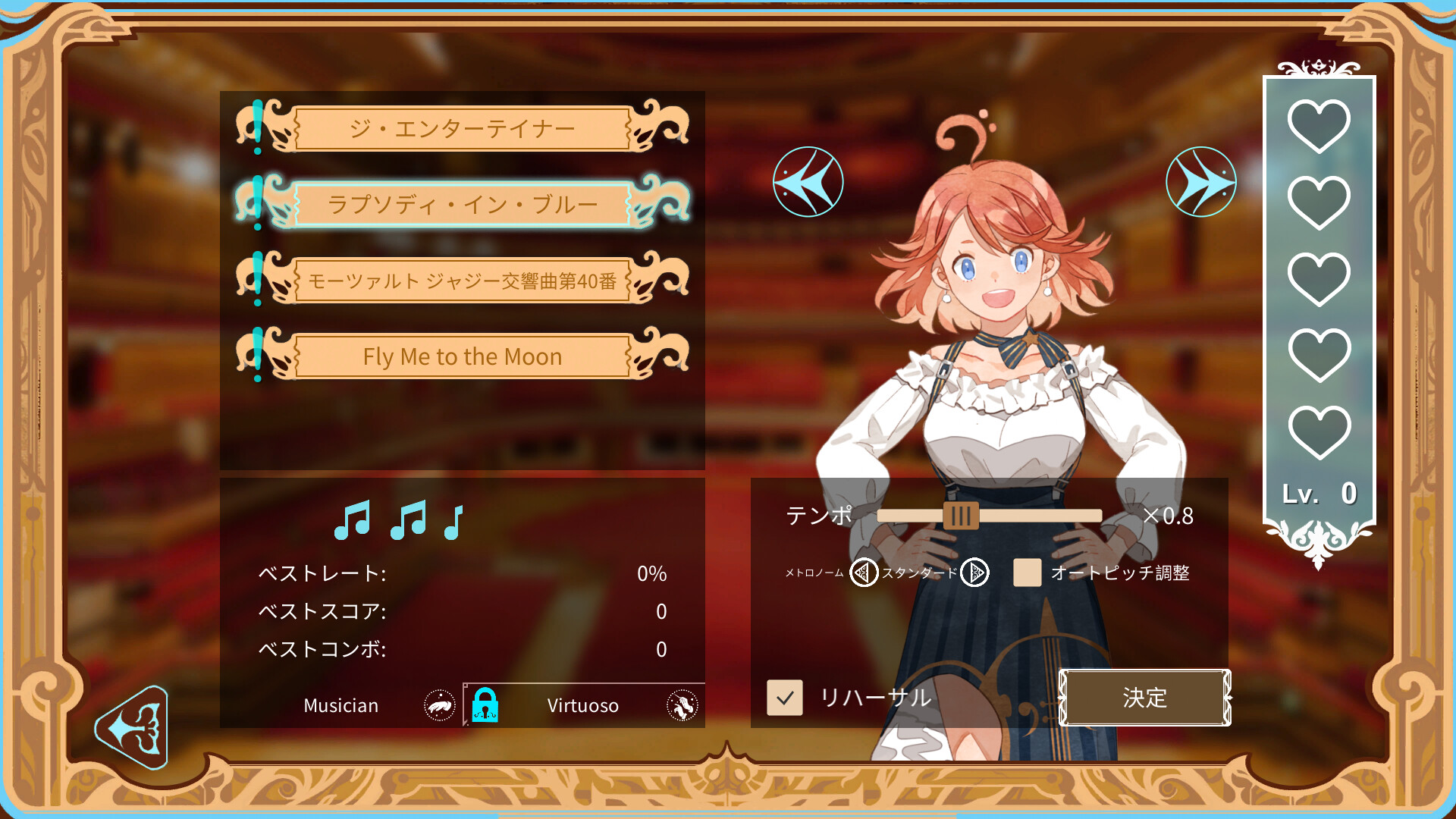 “白鍵上のコンチェルトは、フリープレイとストーリーの2つのモードをメインとした演奏シミュレーションゲームです。フリープレイモードはほぼ完成していますが、ストーリーモードはまだ開発中で、今後定期的に新しいチャプターが追加されるアップデートを通してストーリーが進展していく予定です。初期のプレイヤーのフィードバックは今後のストーリーの進行方針、特に各キャラクターのサイドストーリーに影響を与える可能性があります。