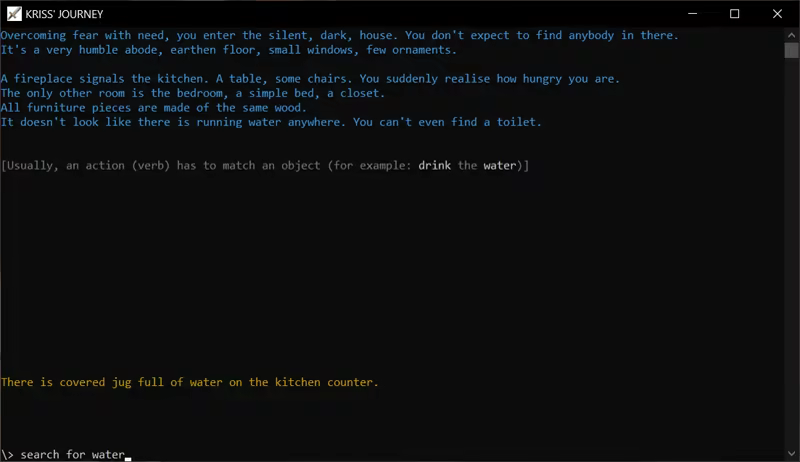 So I took my old science-fantasy novel, which I wrote when I was in high school (before isekai was mainstream) and started adapting it to be an interactive experience to be run inside a terminal, with a minimal (we may say absent) interface and with a command line to type commands when needed.