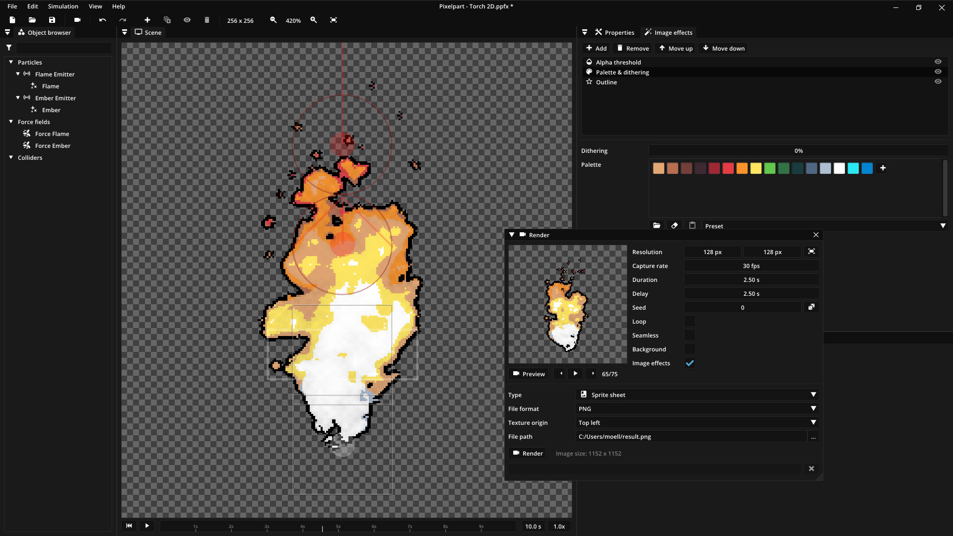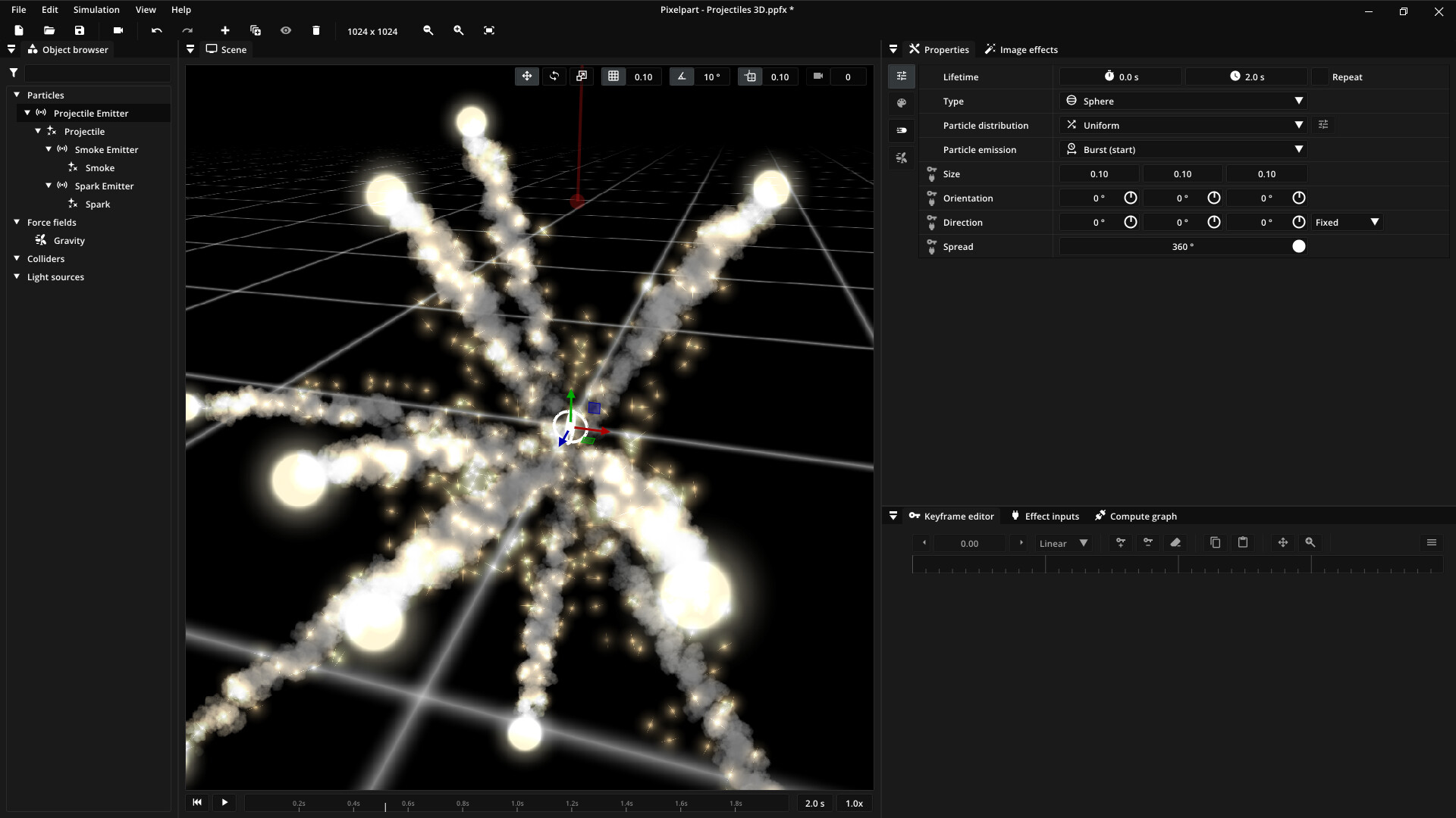 Create visual effects in this particle-based editor! Import the effects into your favorite game engine and fill your game world with colorful animations using the runtime plugins or by rendering them to sprite sheets, image sequences and videos.