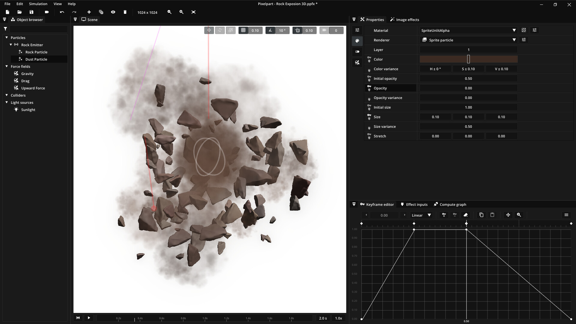 Create visual effects in this particle-based editor! Import the effects into your favorite game engine and fill your game world with colorful animations using the runtime plugins or by rendering them to sprite sheets, image sequences and videos.