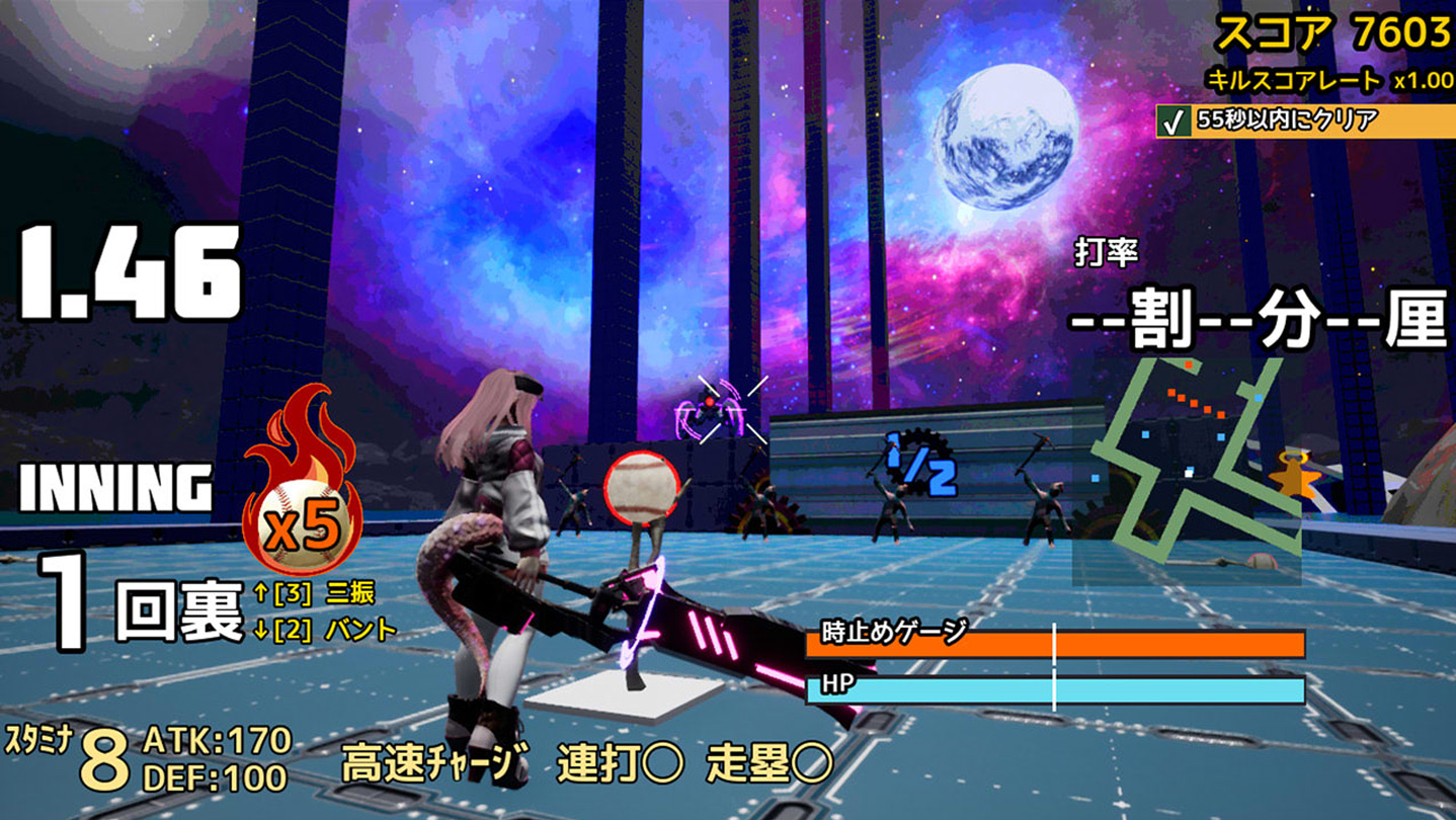 敵弾を打ち返すバッティングモード、Aimで狙い撃つ投球モードが切り替わるイニング制アクション。