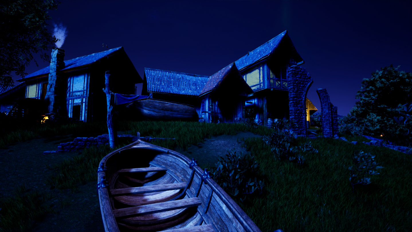 The settlement is located on a small island in the middle of a river, within the walls of an ancient structure. On each side of the island, a bridge leads to the shore, connecting the two sides of the river. There are not many of the ruins left, a few walls, and a stone tower at one of the bridgeheads. In front of the bridge, a wandering merchant struck a homestead with a varied portico. On the outskirts of the village, there is a tavern with a unique garden area.