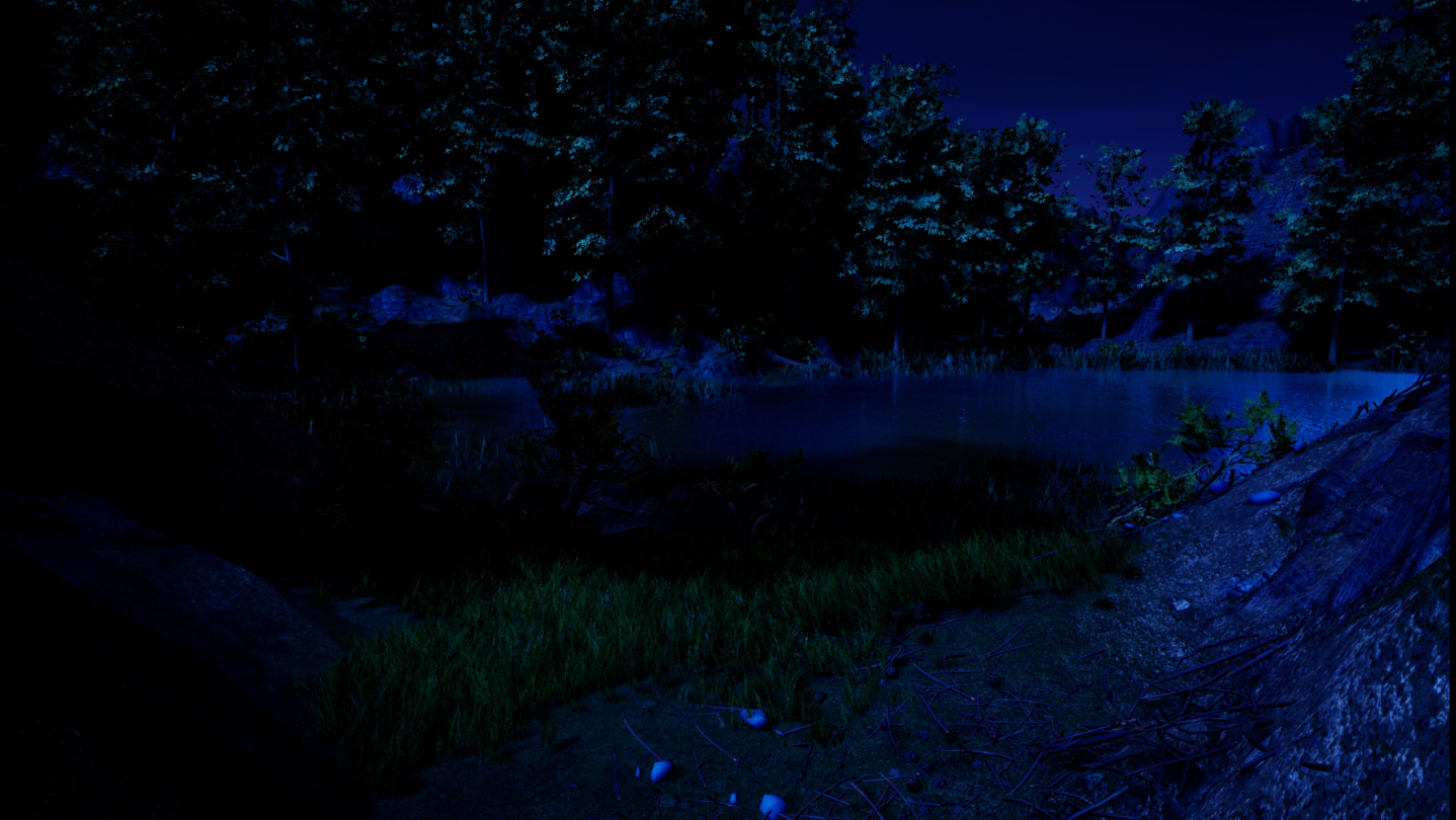 The valley at the foot of the pine-covered mountains is filled with azure glitter by a huge lake as far as you can see. Instead of cliffs, the lake is bordered by a flat, pebble shore in places. These clearings are connected by thin roads winding between the pine forests. On the largest clearing stands an old ruin, part of which has already been flooded.