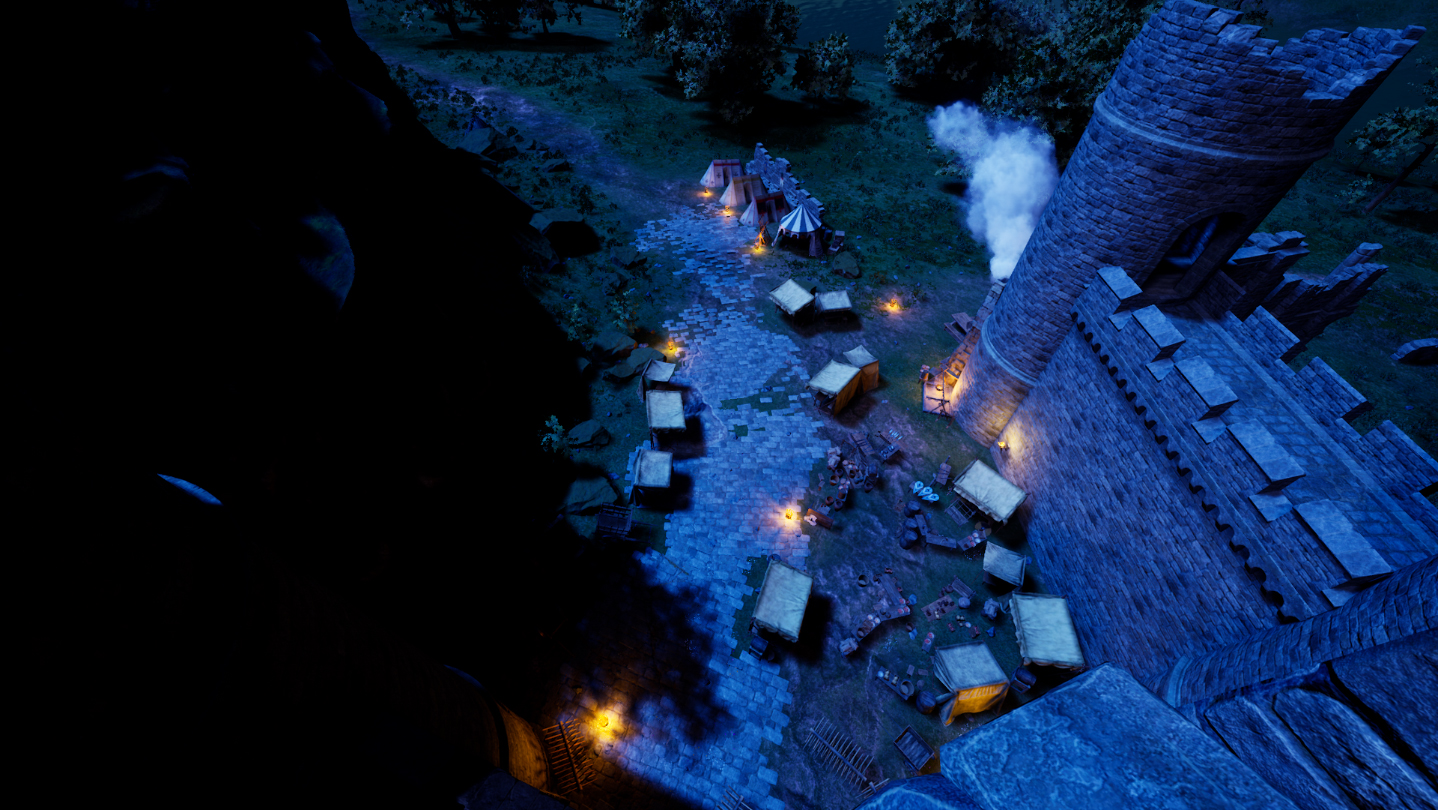 The tollgate was built at the junction of trade routes to a nearby castle. The huge stone walls and towers of the gate towering vigorously over the passers-by, not promising much hope to those who want to avoid the guards' vigilant gaze. On both sides of the gate, a smaller market has developed where merchants offer their goods. A little further on, a river with calm water flows, fed by a dam built on the nearby lake. Once upon a time, there was a harbor here, and between the gate and the dam, there are still traces of the ruins built by a previous empire.