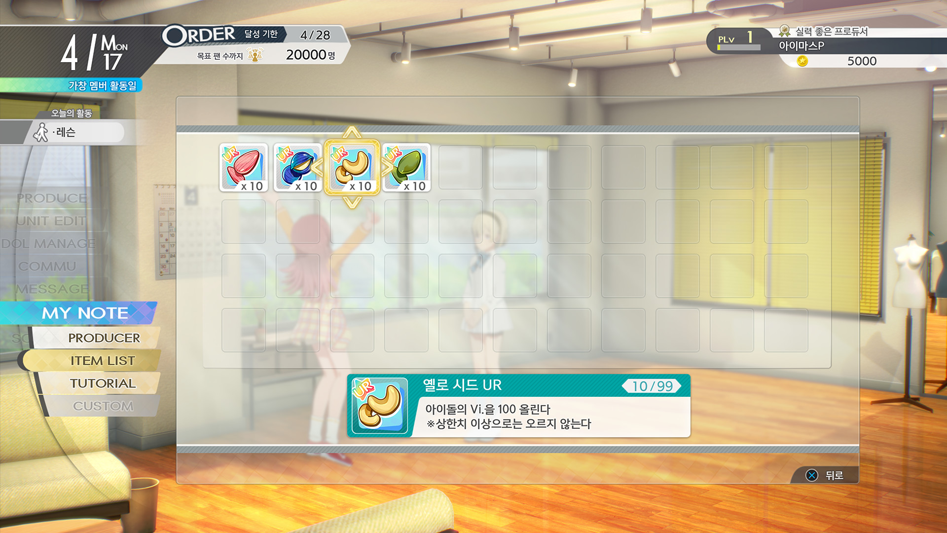 아이돌의 Vi.를 100 올립니다. (상한치 이상으로는 오르지 않음)