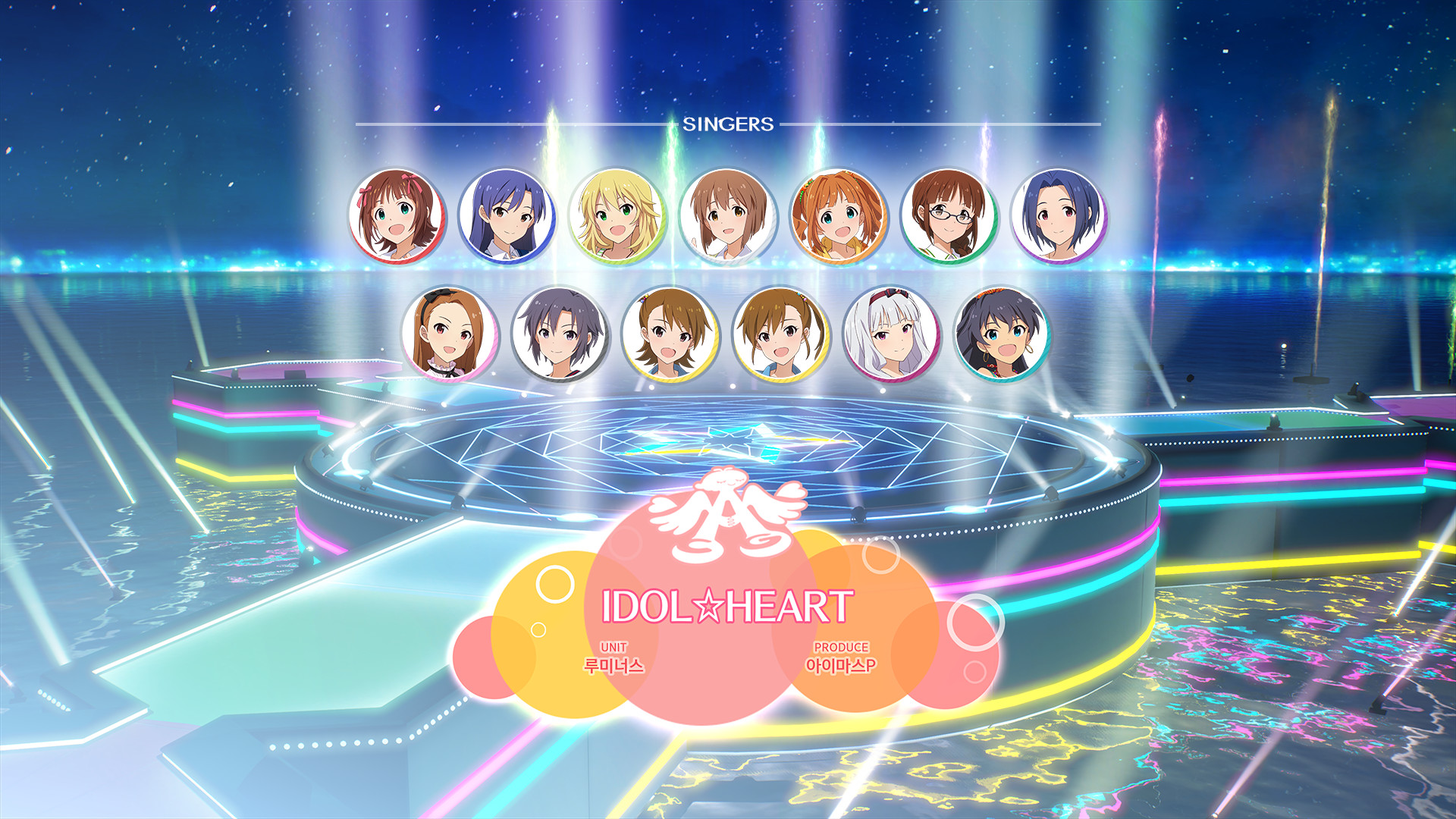 노래하는 아이돌: 【하루카】, 【치하야】, 【미키】, 【유키호】, 【야요이】, 【리츠코】, 【아즈사】, 【이오리】, 【마코토】, 【아미】, 【마미】, 【타카네】, 【히비키】