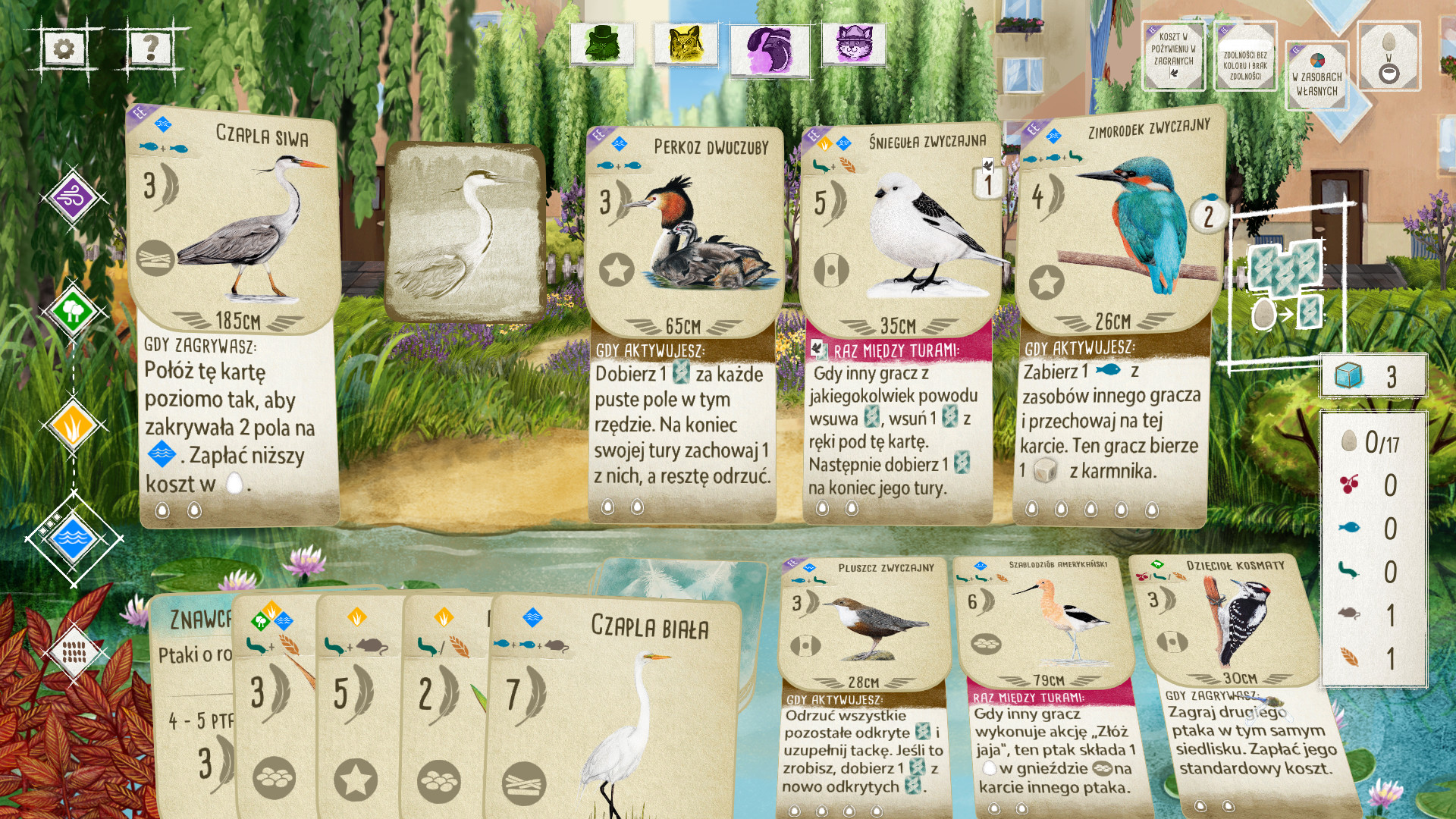Wraz z nowym regionem pojawia się większa pula ptaków do odkrycia. Każdemu z nich towarzyszy nagranie jego głosu. Europejskie ptaki mają też zestaw zupełnie nowych, zróżnicowanych zdolności - używaj mocy końca rundy, zabieraj przeciwnikom pożywienie, zajmuj dwa pola habitatu jedną kartą i wiele, wiele więcej!