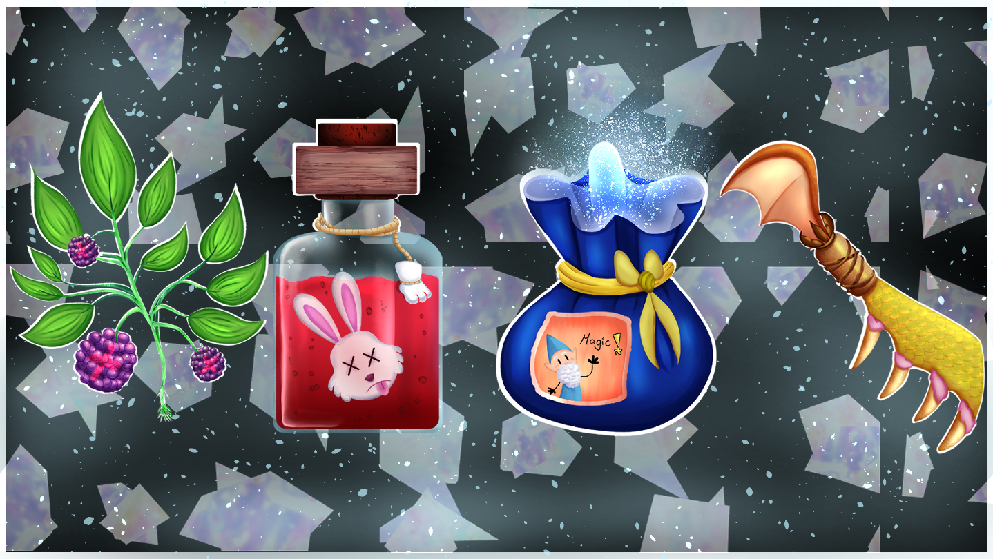 Find the right ingredients among the cards you have and place them on the slots at the middle of the table to create a potion!