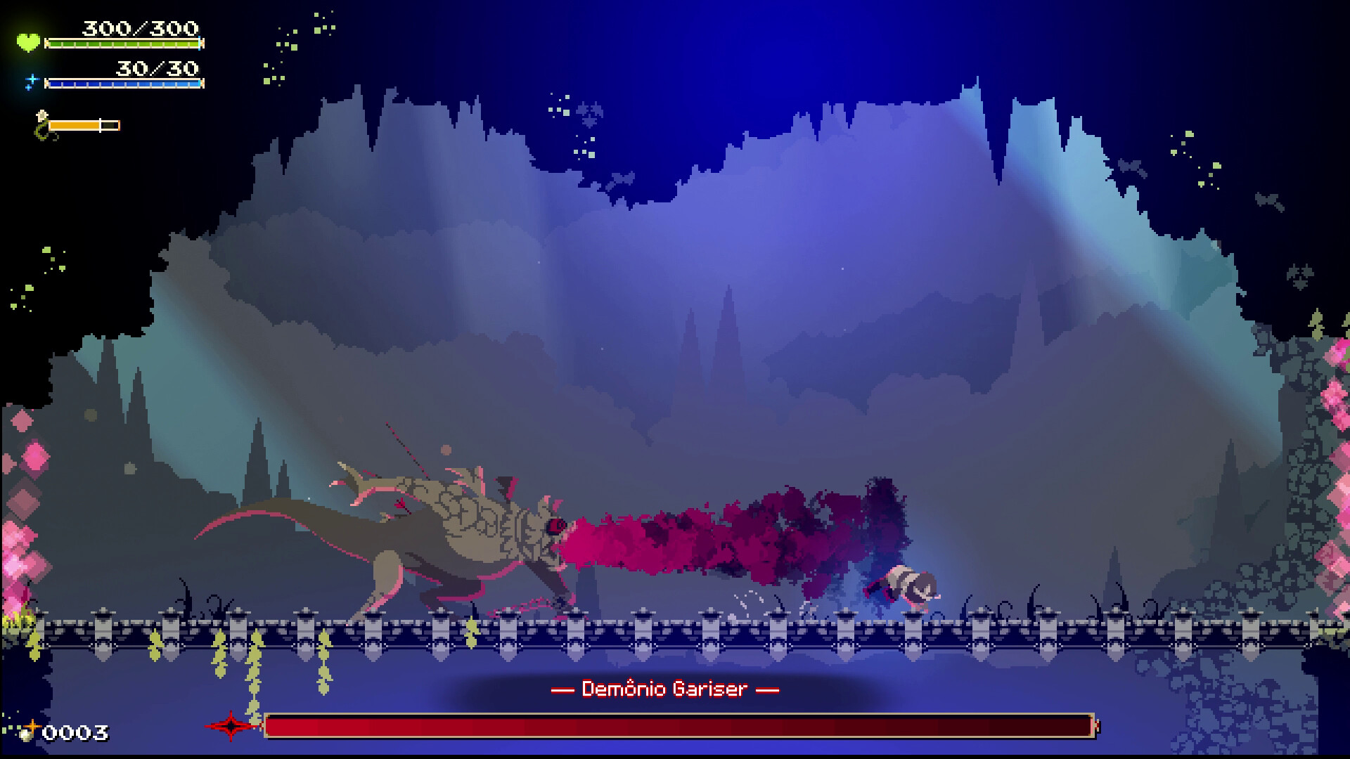 Estou ciente de que muitos jogadores têm familiaridade maior com a história de Kaho, ambientada no passado distante. Por isso estou projetando "Moonlit Farewell" para ser o mais divertido possível mesmo para quem não tem conhecimento prévio das histórias de Momodora 1 a 3. A série sempre esteve focada na ação, de qualquer forma, contendo histórias minimalistas. Então ninguém precisa se preocupar em ter que "se colocar em dia"!