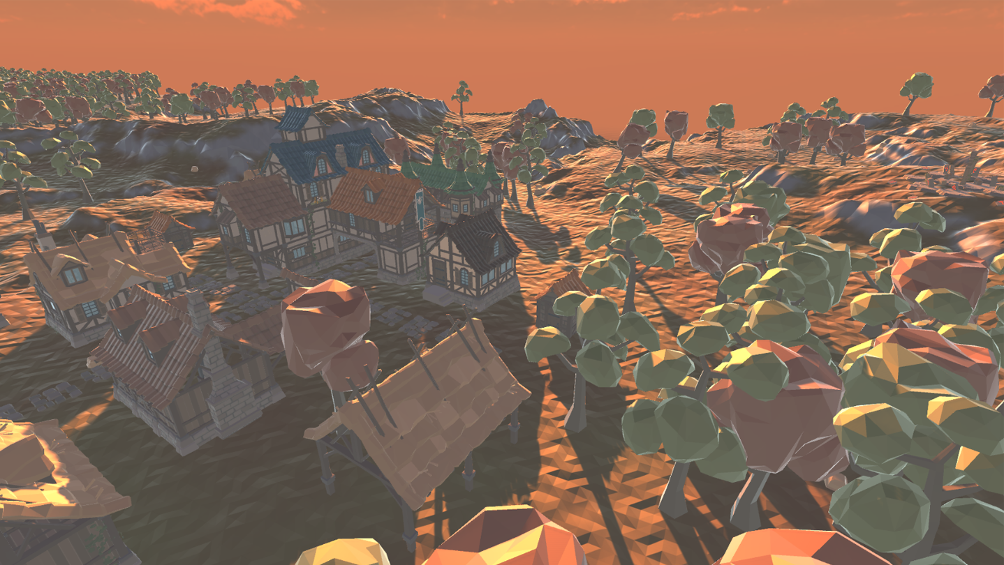 - Collect resources by harvesting trees/buildings or looting chests scattered across the map