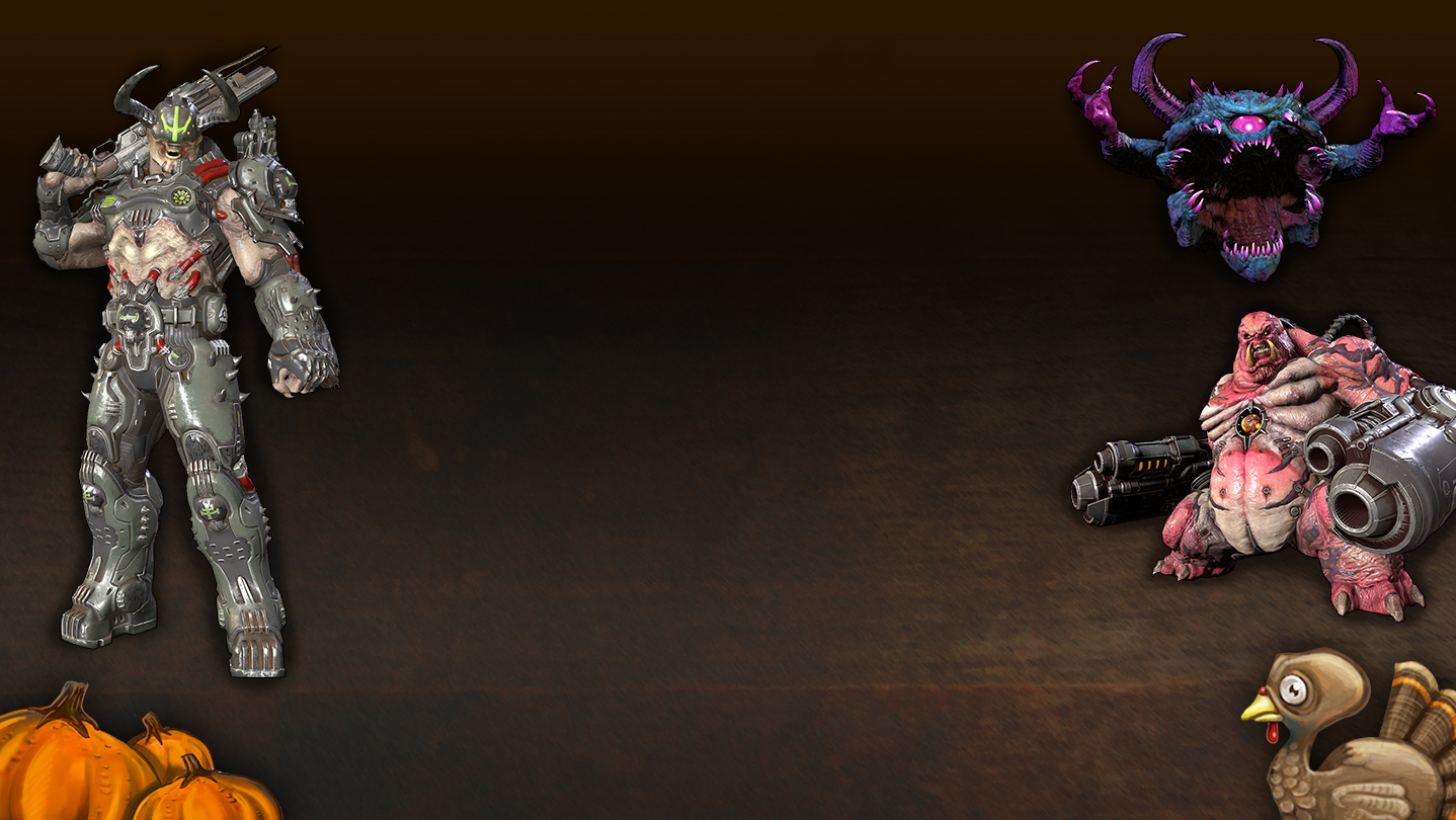 Gikk du glipp av Series Seven-arrangementet Thanksgibbing i DOOM Eternal? Få mer enn 12 kosmetiske gjenstander, blant annet alle figur- og våpenskins, tilpassede animasjoner, spillerikoner og navneskilt. Bekjemp helvetes horder med stil i den episke kampanjen og BATTLEMODE i DOOM Eternal, eller vis frem spiller- og våpenskinsene dine i fotomodus i kampanjen.