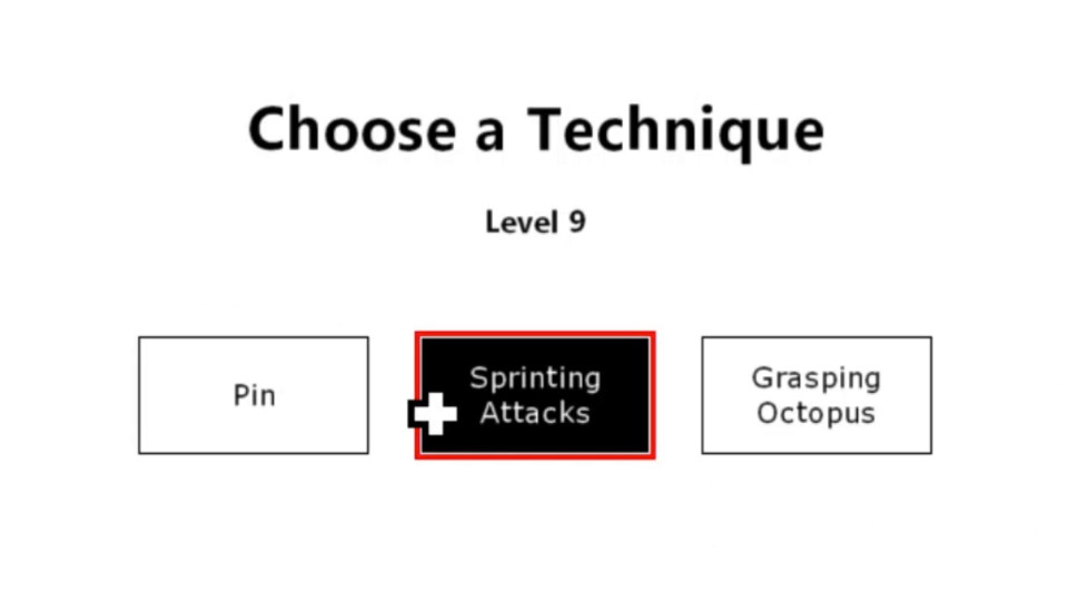 Between each level, you get to choose one of three random techniques to take with you through the end of your run. Each run will feel different as you won’t be given the same options as last time. (These will have fun names and be represented as cool pins Punchy puts on their jacket in the final game)