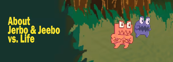 Jeebo & Jerbo vs. Life is a story focused Metroidvania/Party Based JRPG told in chapters! The overworld plays like a standard 2D Metroidvania where unlocking new party members allows you to access previously inaccessible locations due to their unique movement abilities! For example, Jeebo can wall jump, and Jerbo can pogo jump off of normally dangerous obstacles.