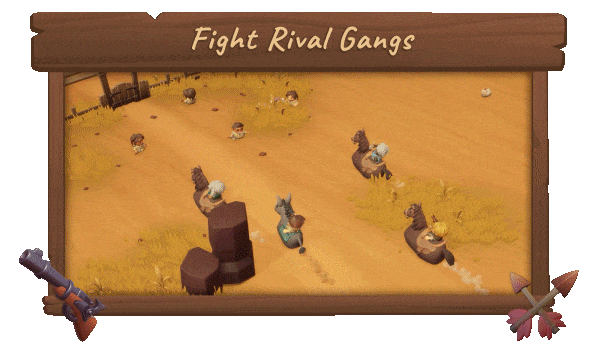 Play as a lone ranger or team up with up to 3 other players to form a gang. Work together to gather resources and build the finest hideout in the west. Take on the biggest and baddest outlaws with your fellow cowboys, and share a horse to ride tandem into the sunset.
