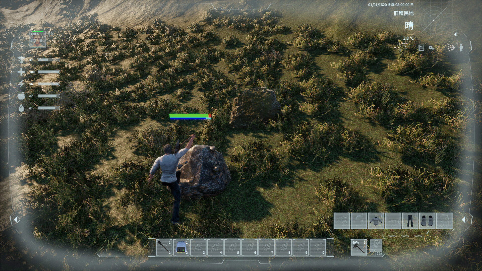 “当前主要完成了野外的生存模块及农场的耕种模块、牧场模块和交易模块,及部分动作和战斗内容。”