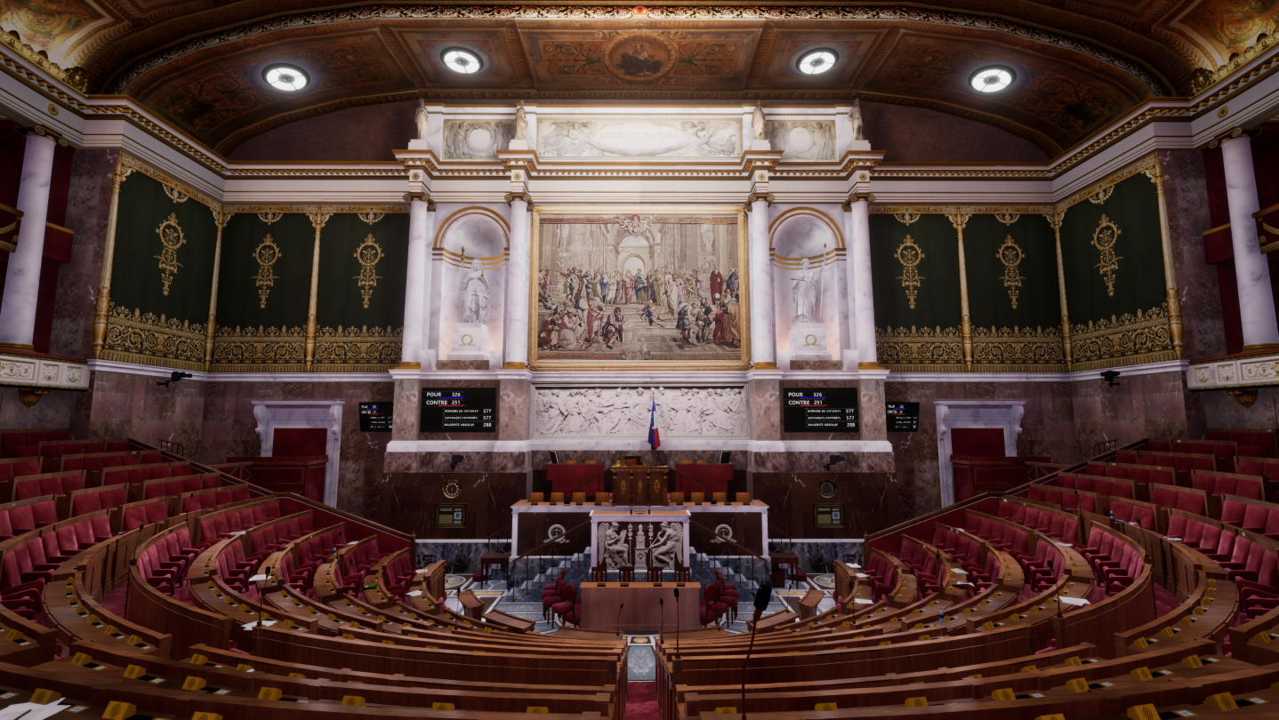 Freely explore the National Assembly and the Hôtel de Lassay using your computer, Steam Deck, or virtual reality headset, in a fully immersive experience.