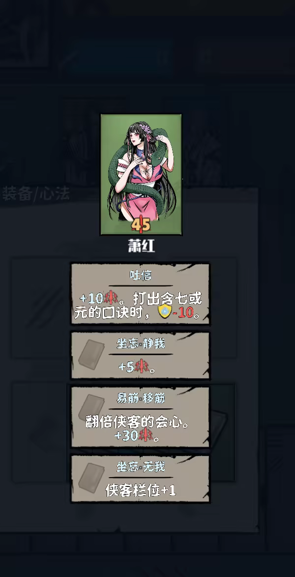 侠客除了自身的天赋获得成长,还可以学习心法。