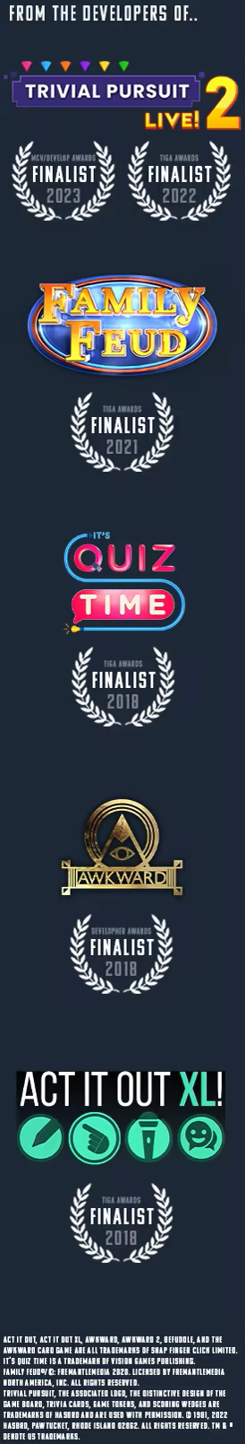 Befuddle can be played together in the living room using controllers, phones, or online over Twitch, so gather your friends near and far and get solving. With a wide range of genres from different eras, everyone, no matter the age, can get involved!