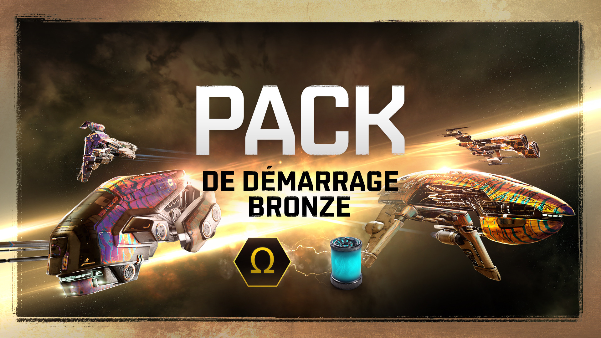 Démarrez votre aventure interstellaire avec le pack de démarrage Bronze pour obtenir 7 jours de temps de jeu Omega, vous permettant de vous entraîner plus rapidement et de pouvoir piloter plus de vaisseaux. Vous obtiendrez également 100 000 points de compétence pour accélérer l'apprentissage des compétences dont vous avez besoin tout de suite ; ainsi que des SKINS Semiotique Superluminal pour quatre frégates populaires !