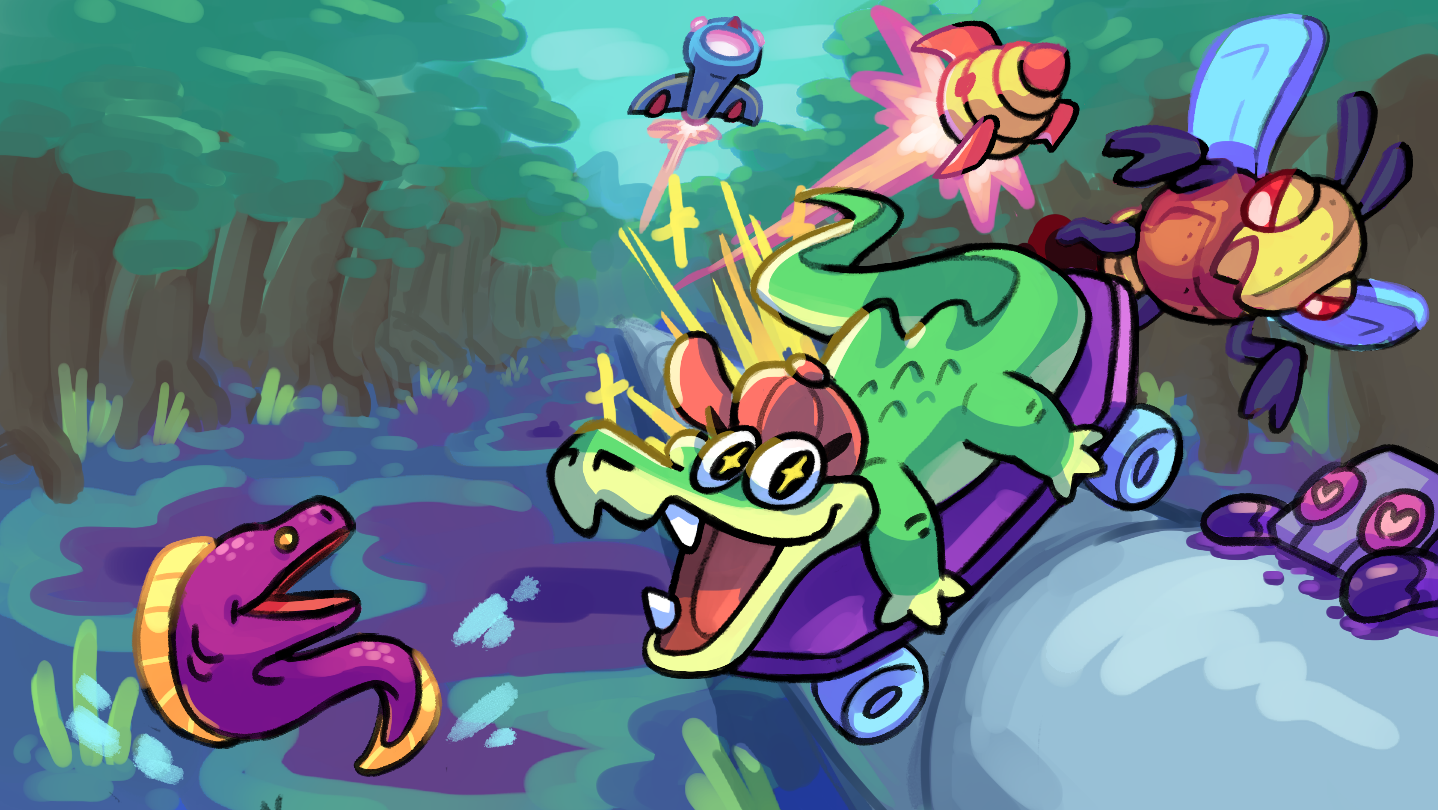 SKATOR GATOR was just minding his own business when those greedy capitalist robots started ruining his swamp!
