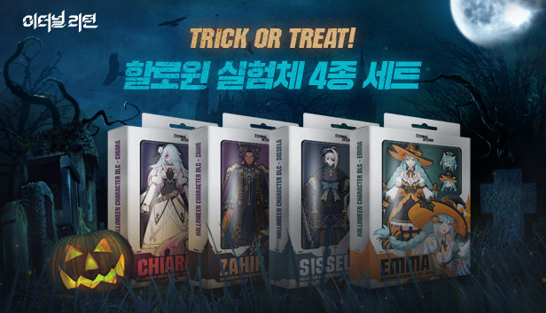 주의: 이터널 리턴 할로윈 실험체 4종 세트 제품은 더 이상 Steam 상점에서 이용할 수 없습니다.
