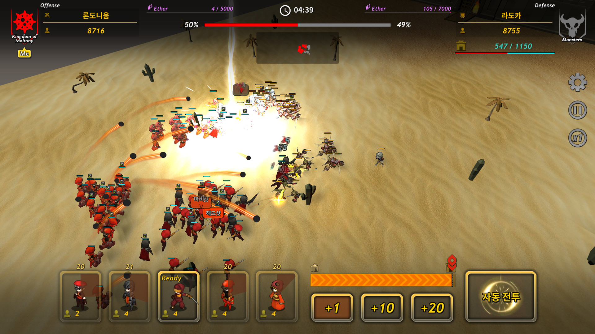 우선 자국의 도시들에 유닛육성, 시장활성화, 식량생산, 병사모집, 성벽강화 등의 정책을 실행하여 국가를 발전시키고 전쟁에 투입될 군대를 모읍니다.