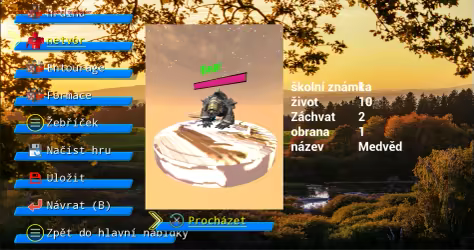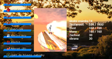 Rozhraní pozastavení zobrazíte stisknutím klávesy Esc nebo P. Nabídka obsahuje: hrdina, monstrum, doprovod, formace, výsledková tabulka, načtení hry, uložení, návrat (B) a návrat do hlavní nabídky.