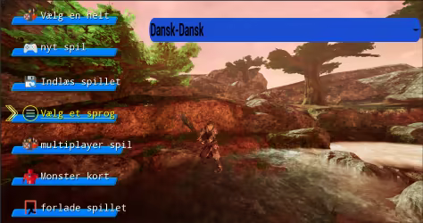 Klik på Vælg sprog for at vælge det sprog, der bruges i spilgrænsefladen. Spillet understøtter i alt 24 sprog. Sprog kan vælges med W -tasten, S -tasten eller op- og ned -tasterne. Som vist herunder: