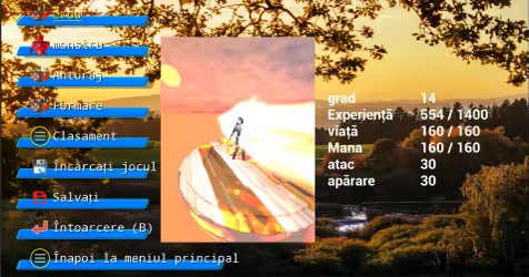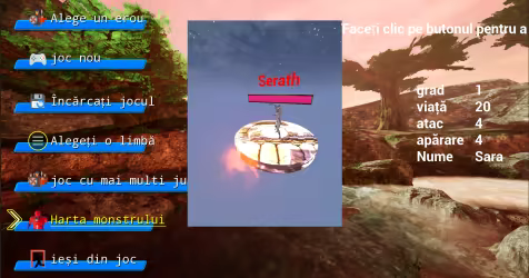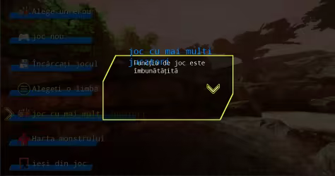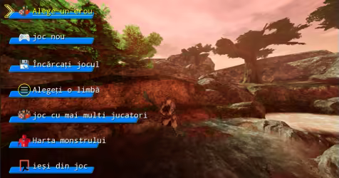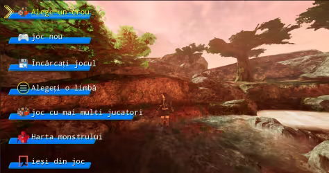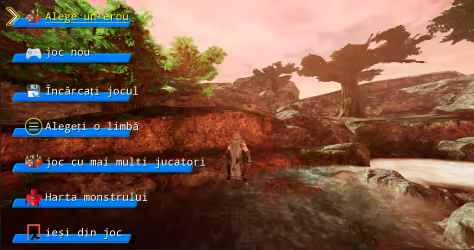 Meniul principal include selecția eroului, joc nou, joc de încărcare, selecție de limbă, joc multiplayer, hartă monstru și joc de ieșire.