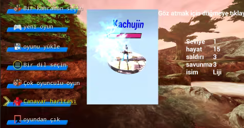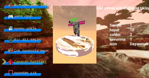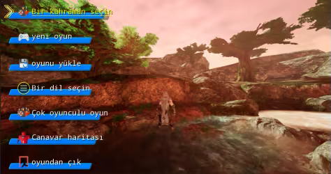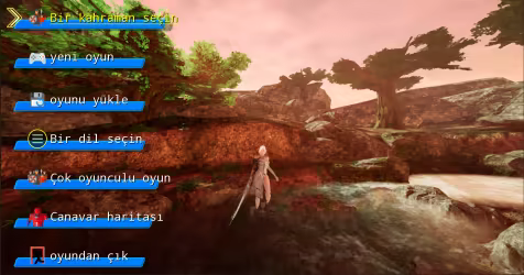 Ana menü, kahraman seçimi, yeni oyun, oyun yükleme, dil seçimi, çok oyunculu oyun, canavar haritası ve oyundan çıkma içerir.
