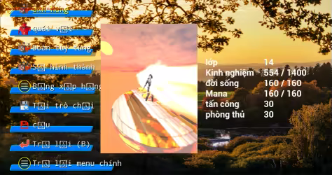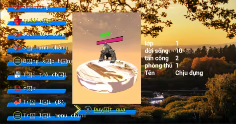 Nhấn Esc hoặc P để xuất hiện giao diện tạm dừng Menu bao gồm: anh hùng, quái vật, tùy tùng, đội hình, bảng xếp hạng, tải game, lưu, quay lại (B) và quay lại menu chính.