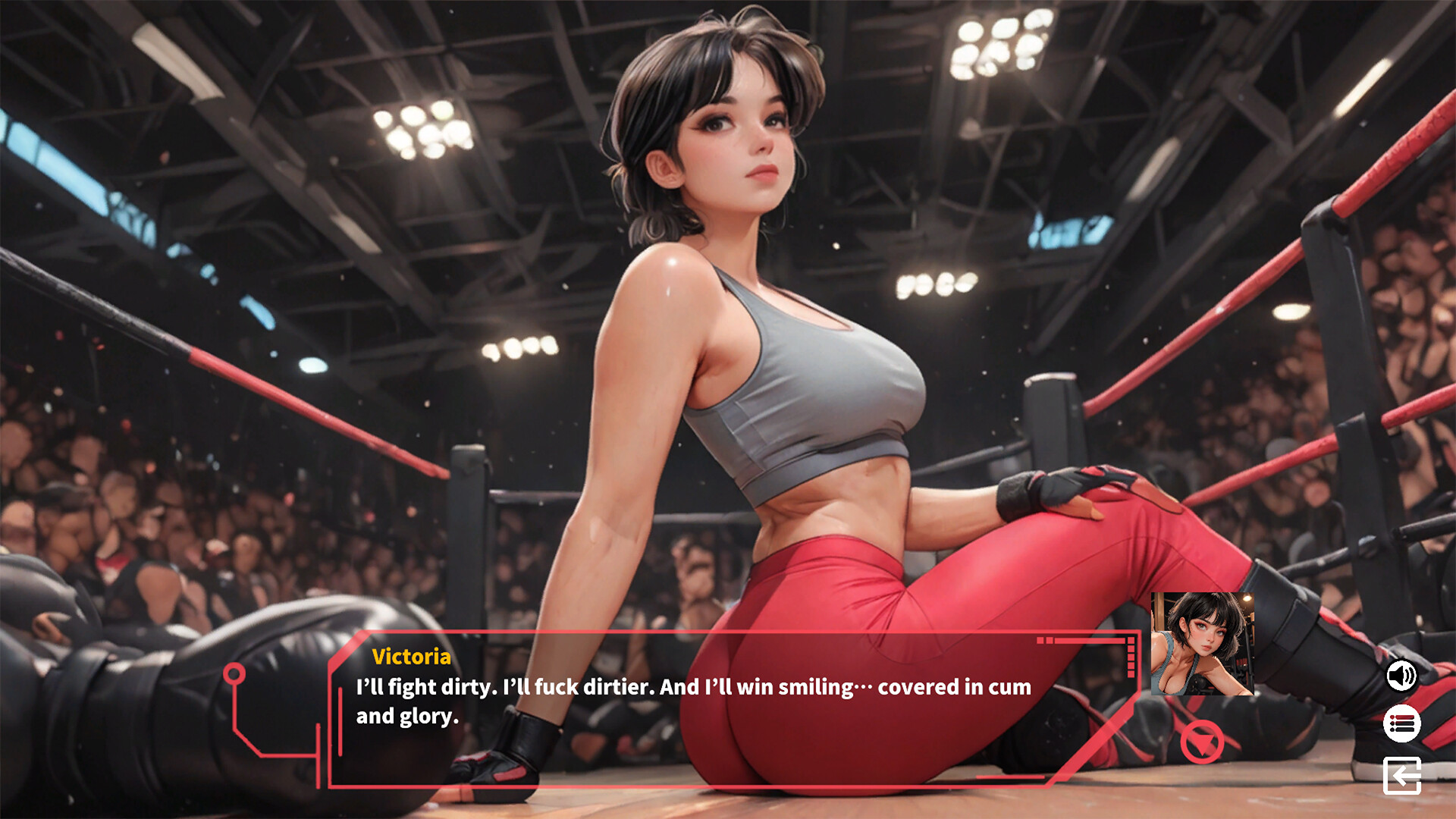 Characters participate in fights wearing little or no clothing. Nudity at all times. Characters fight naked in most fights. Opponents finish the fight by fucking with great dedication and pleasure. Nudity is constant and sex is explicit.