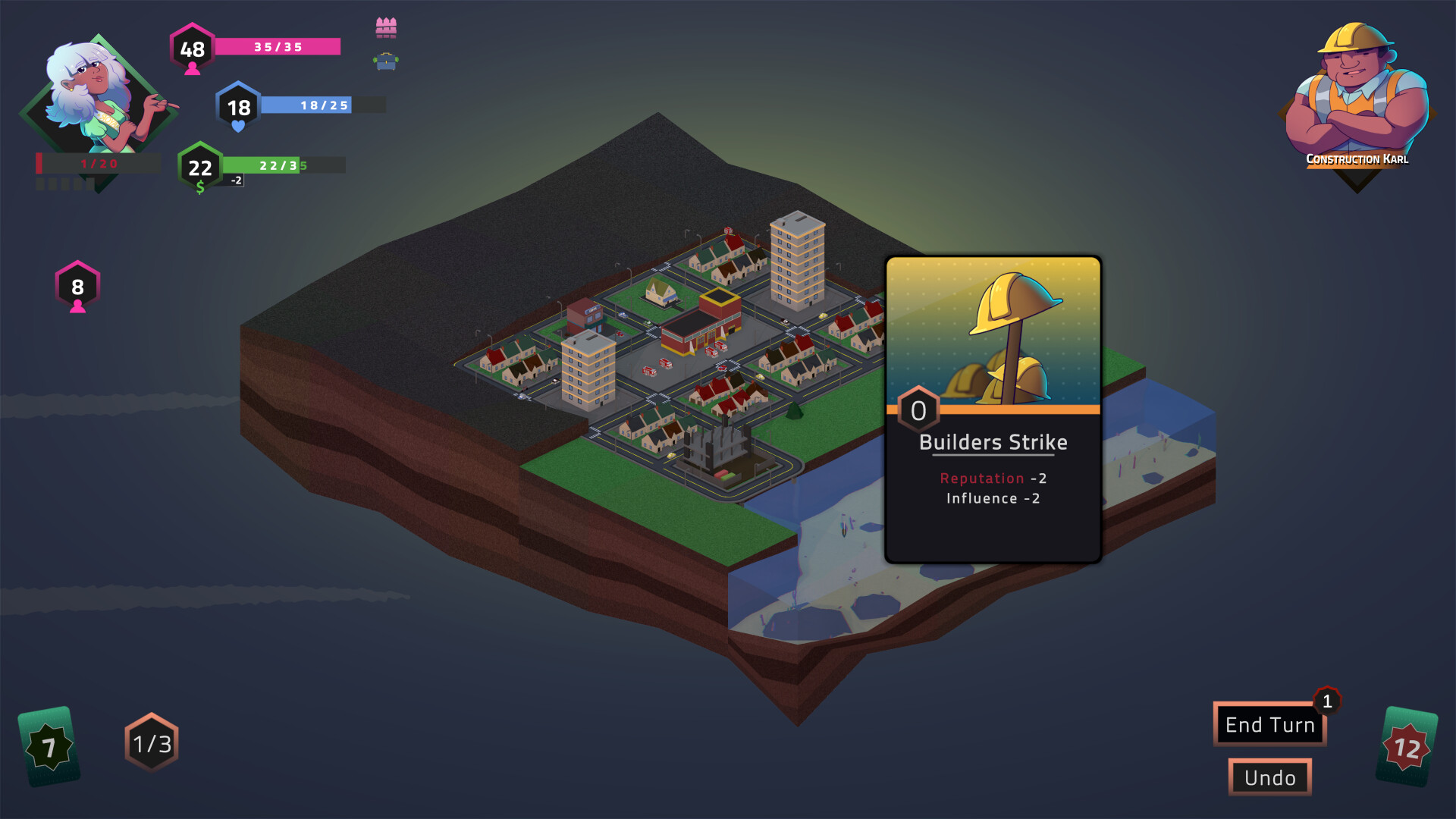 City-building meets deck-building in a chaotic roguelike where rival mayors unleash havoc on your city. Build your perfect metropolis while angry construction workers tear it down, evil beekeepers swarm your citizens, and skeleton archers rain flaming arrows from above.
