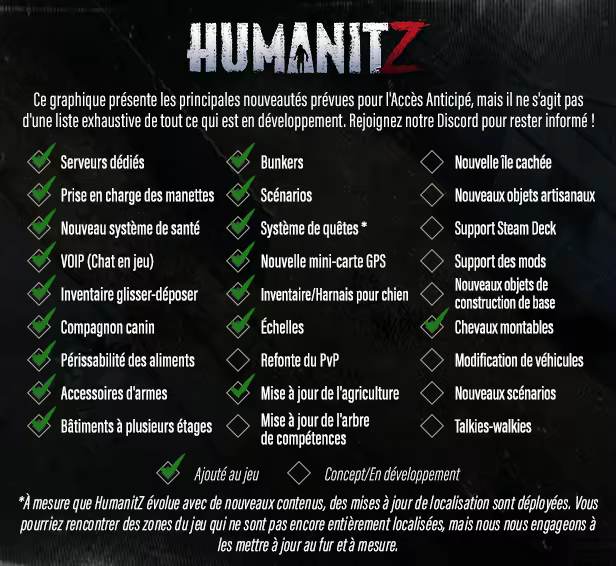 • Jeu solo, coopératif, PVE, PVP, serveurs dédiés, 9 langues, chat vocal de proximité, chien compagnon et plus encore