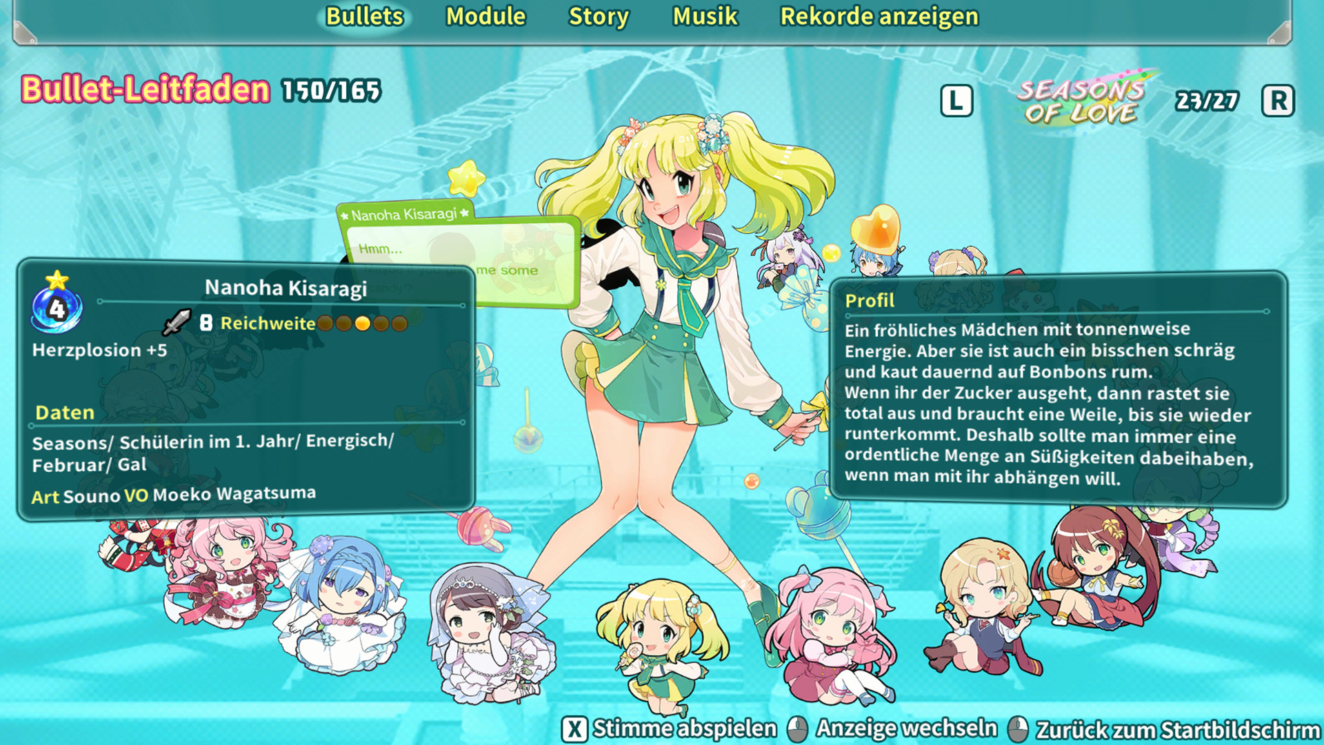 Von "Seasons of Love" über "The Aquarhythm Deep" bis zu "Phoenix Gunner" basiert jedes der 7 Felder auf einem klassischen Spielgenre wie Dating-Simulationen, Rhythmus-Spielen oder Dungeon Crawlern.